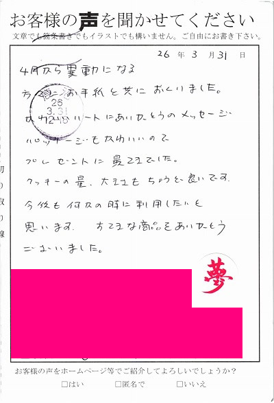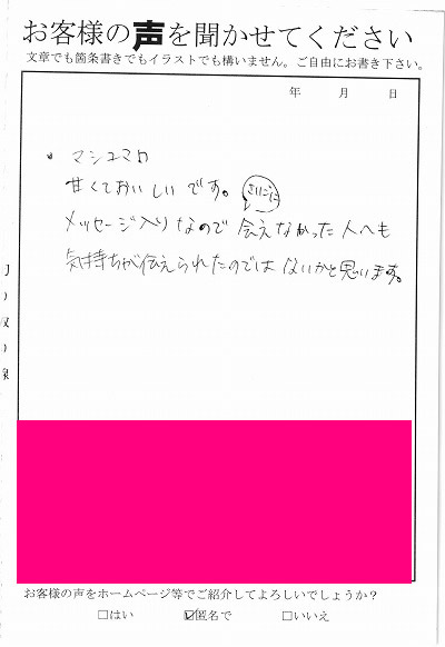 お客様からお寄せ頂いた嬉しいエピソードをご紹介します。