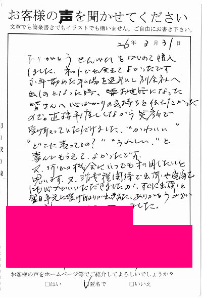 ■広島県 Y様よりのお声