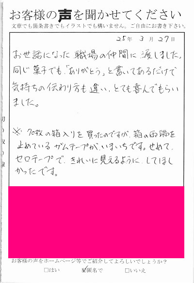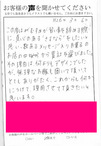 お客様からお寄せ頂いた嬉しいエピソードをご紹介します。