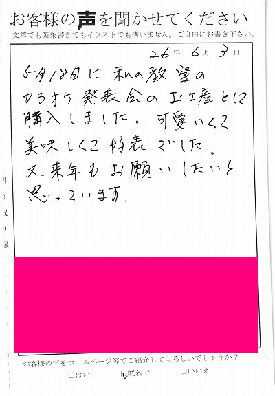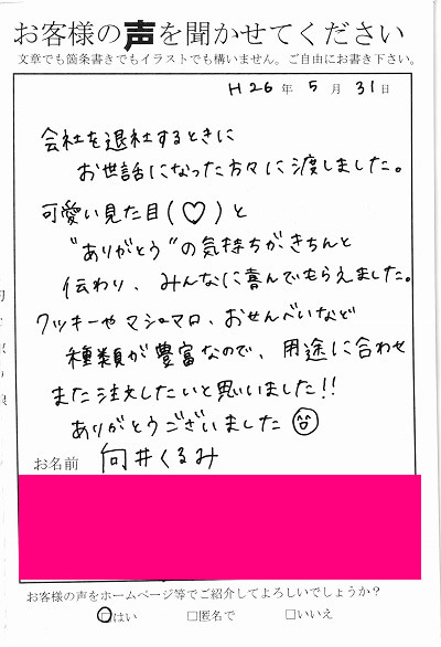 お客様からお寄せ頂いた嬉しいエピソードをご紹介します。