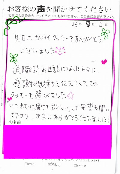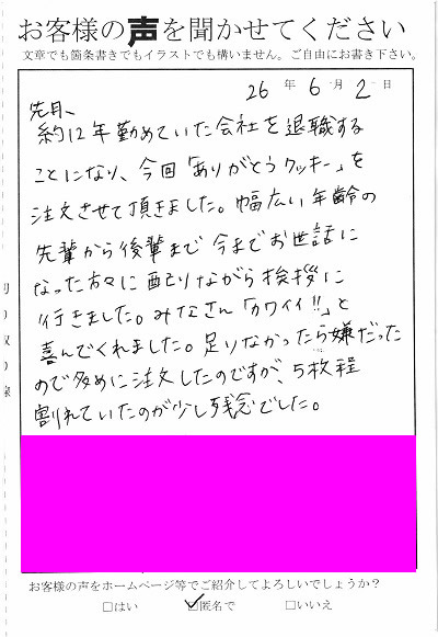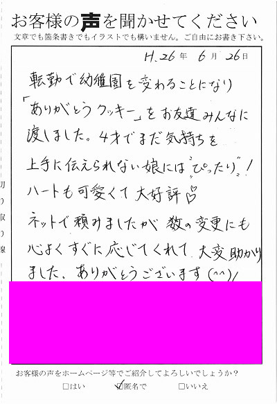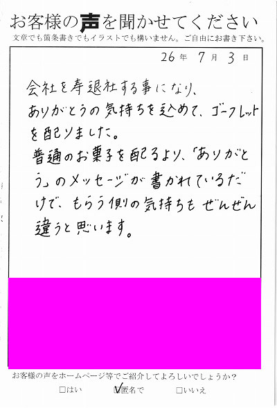 お客様からお寄せ頂いた嬉しいエピソードをご紹介します。