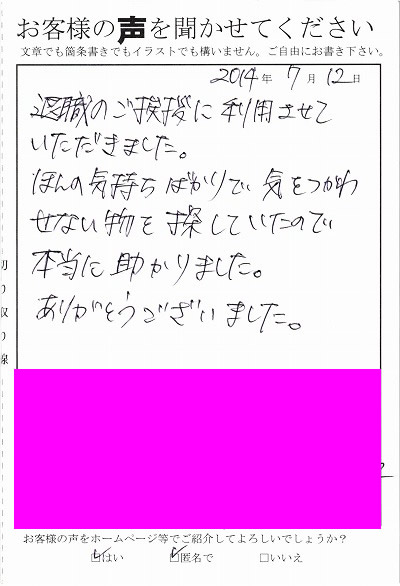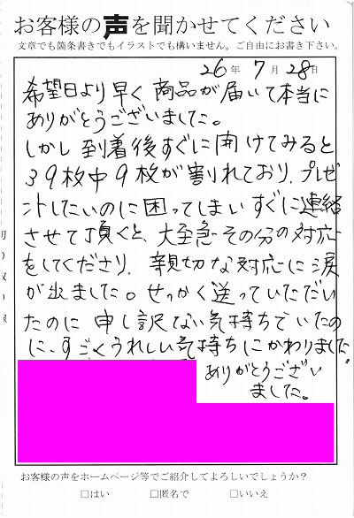 お客様からお寄せ頂いた嬉しいエピソードをご紹介します。