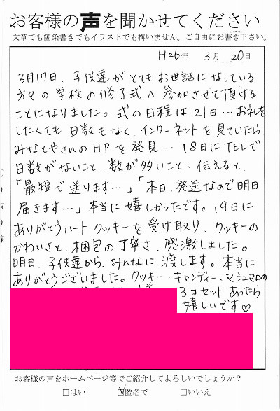 お客様からお寄せ頂いた嬉しいエピソードをご紹介します。