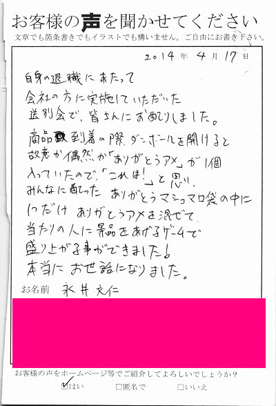 お客様からお寄せ頂いた嬉しいエピソードをご紹介します。