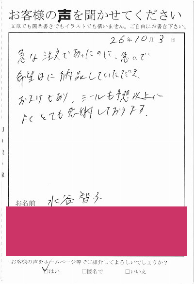 交通事情によりご希望の時間帯に到着しない場合もございます。 |